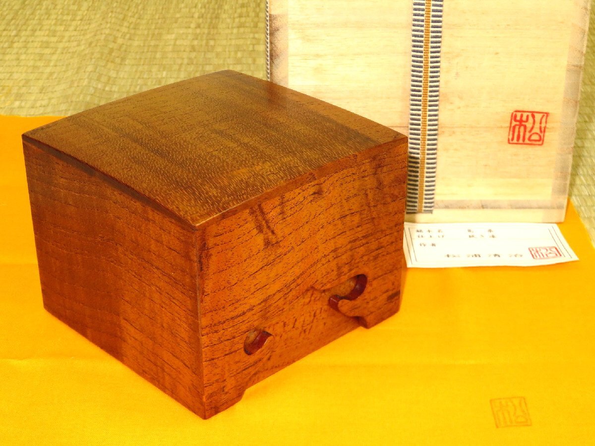 1000円スタート▲松浦清治作島桑拭漆仕上四隅落将棋駒箱▲桐箱付/新品