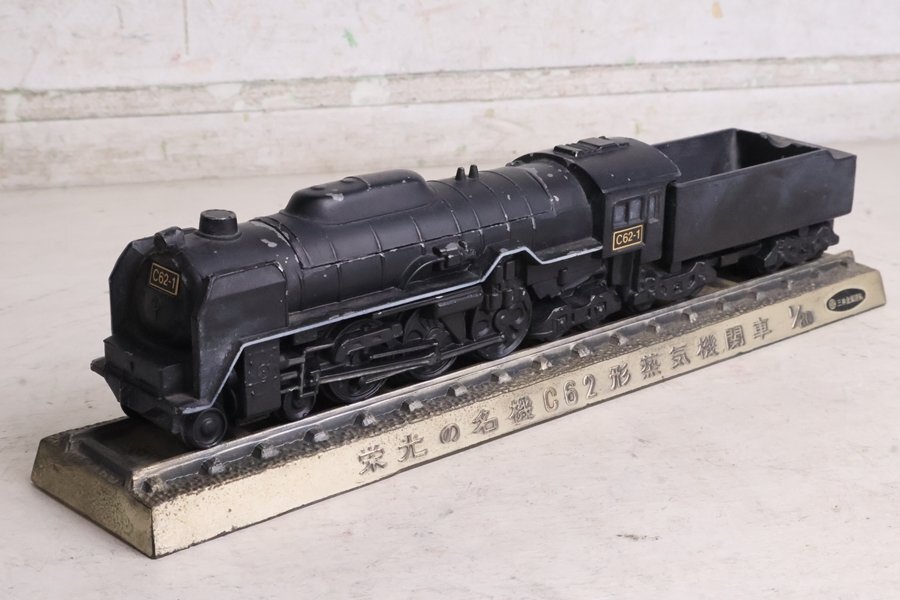 - TB526栄光の名機C62形蒸気機関車 置物 三井金属◇1:80/非鉄金属製/シロクニ/鉄道/国鉄/フィギュア/模型/C62-1/汽車/SL/古道具タグボート