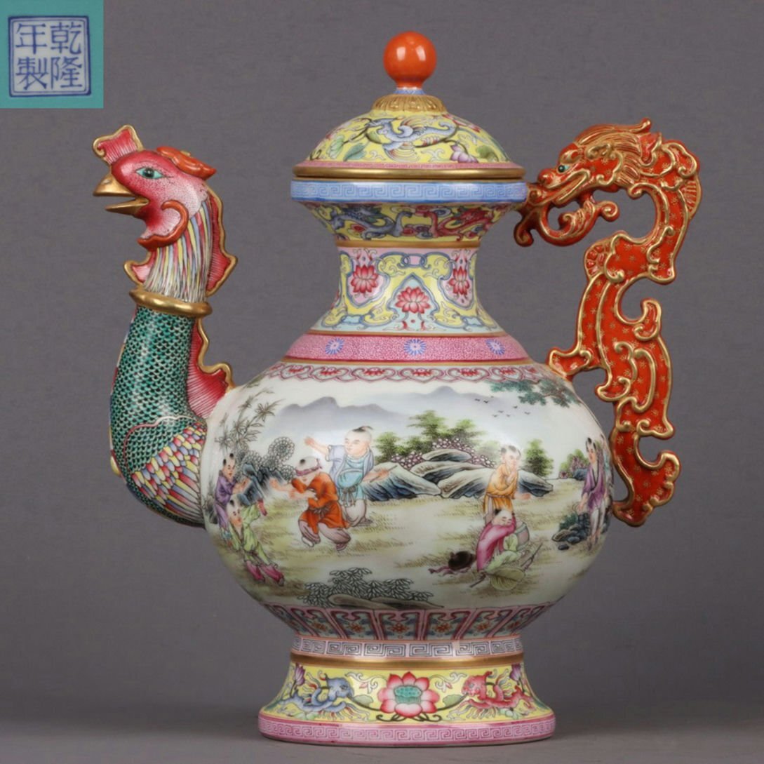 - ▼渡鶴羽▼K0351清乾隆 琺瑯彩塗金人物故事紋壺・古陶磁器 ・珍品旧蔵・古賞物・時代物