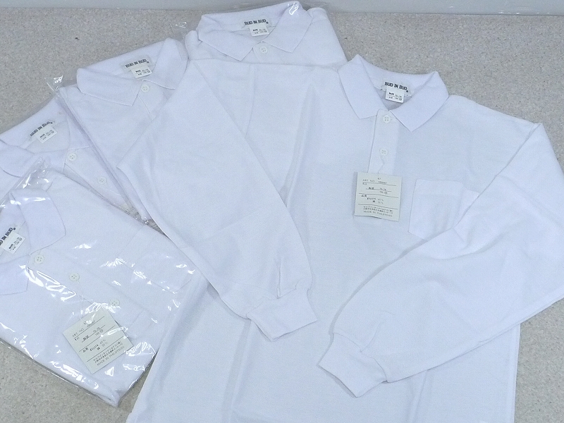 > 80PS03▲【未開封】BUD IN BUD・長袖白ポロシャツ・150サイズ 5着セット・学生服 キッズ 学校 通学 児童 スクール 子供