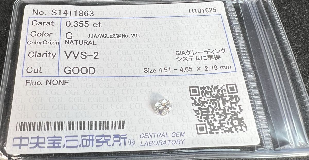 - 1円 ダイヤモンド ルース 0.355ct G VVS-2 Good EG2487