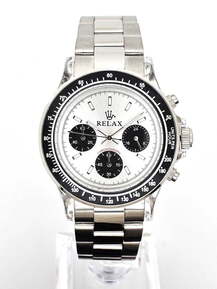 - RELAX リラックス 王冠ロゴ D4-S ヴィンテージカスタム腕時計 クロノ 世界的にも注目されているモデル シルバー文字盤 世田谷ベース