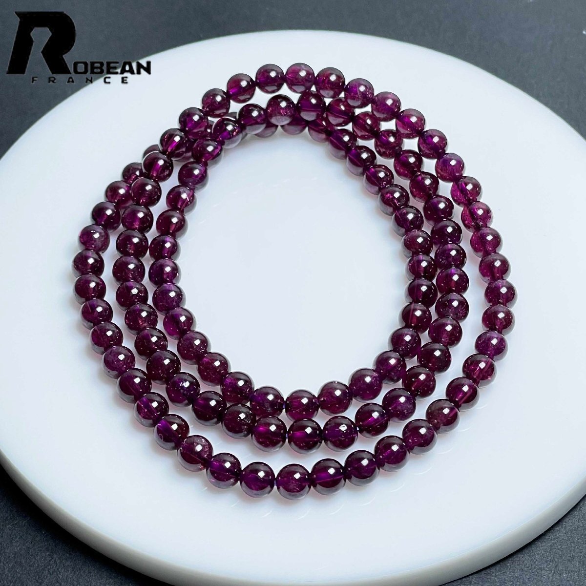 > 逸品 EU製 定価11万円★ROBEAN・グレープガーネット★パワーストーン 3本巻きブレスレット 天然石 幸運 お守り 5.3-5.6mm M0312532