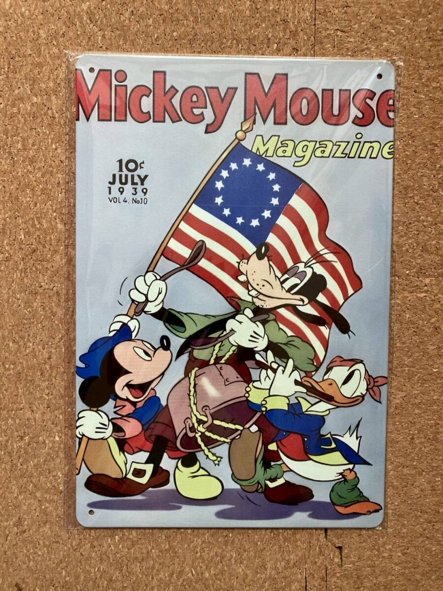 > ミッキーマウス グーフィー ドナルドダック 星条旗 レトロ ビンテージ ブリキ看板 メタルサインプレート アメリカン雑貨 ウォールデコ