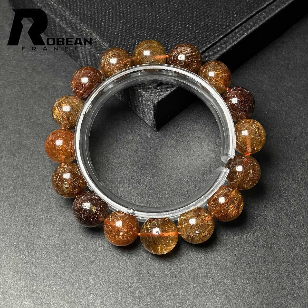 > レア EU製 定価15万円★ROBEAN・銅髪ルチルクォーツ★ブレスレット パワーストーン 天然石 綺麗 金運 お守り 13.3-13.6mm M1106961