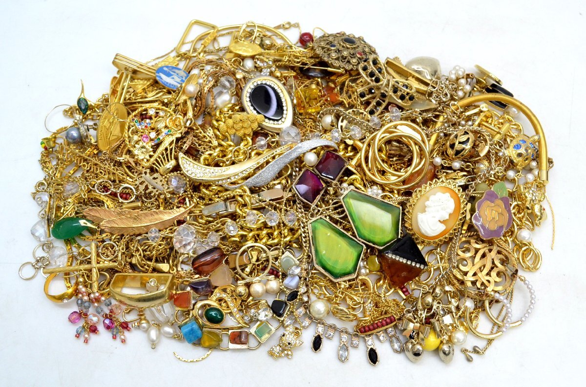 > アクセサリー ジャンク ネックレス ブローチ イヤリング ブレスレット 装飾品他 ゴールドカラー まとめ 約1kg [fui]