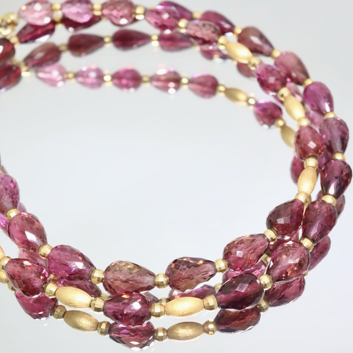 - 【Ambrose(アンブローズ)】K18!!保証書付き!!■天然トルマリンネックレス■D 約17.8g 約42.0cm tourmaline necklace ピンク EE0/EG0 U922