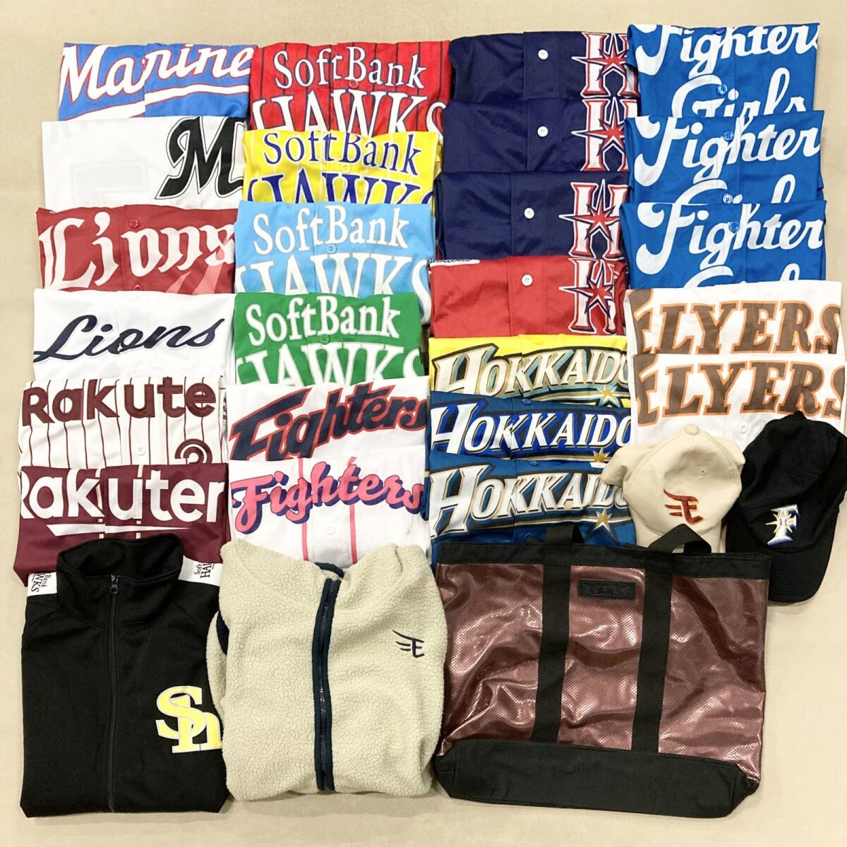 - ★ プロ野球 ユニフォーム 29点 まとめ パリーグ マリーンズ ライオンズ ソフトバンク 日本ハム 楽天イーグルス 帽子 鞄 卸 現状品 5.26kg