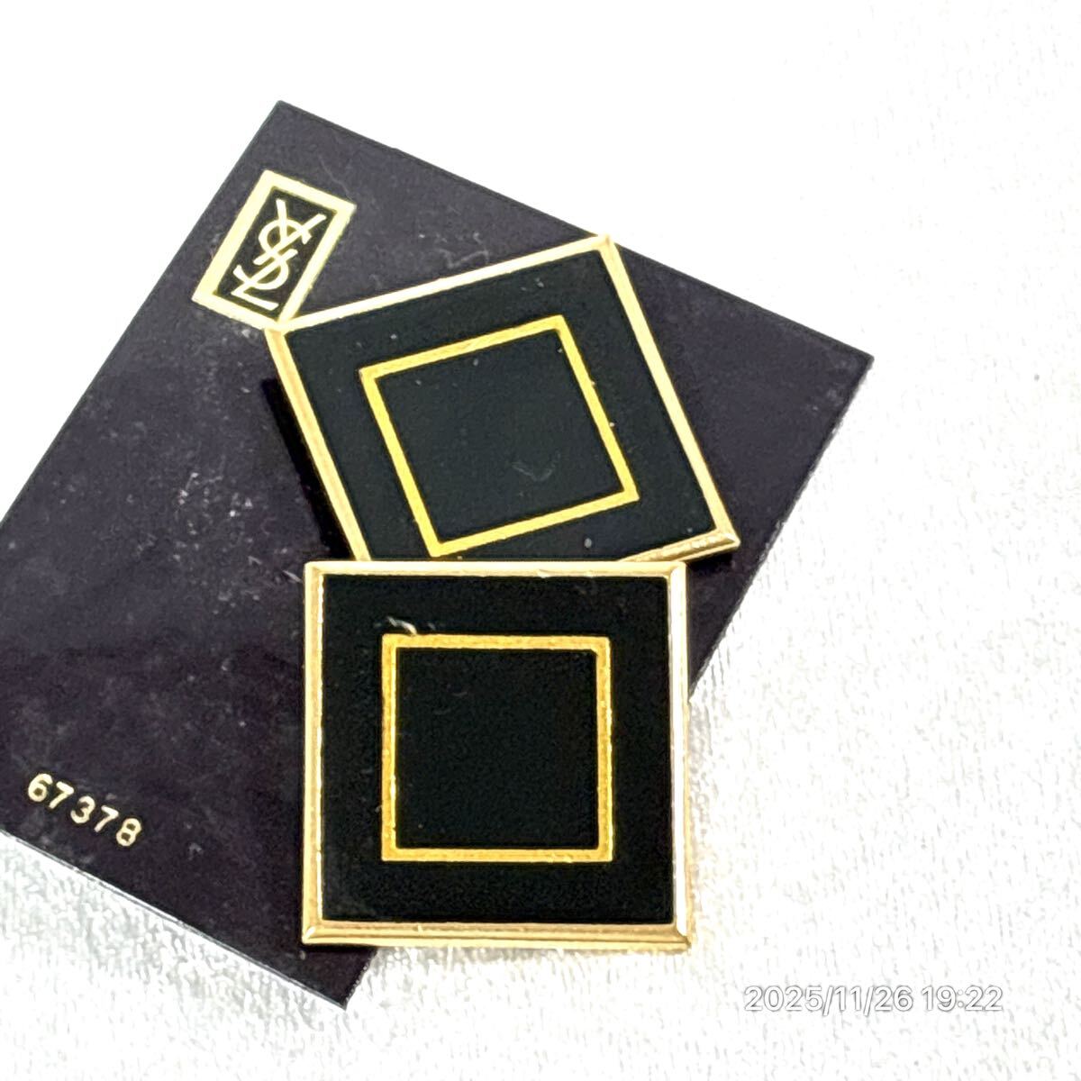 > vintage YSL イヴサンローラン スクエア型 ゴールド×ブラックカラー イヤリング ピアス アクセサリー 装飾品