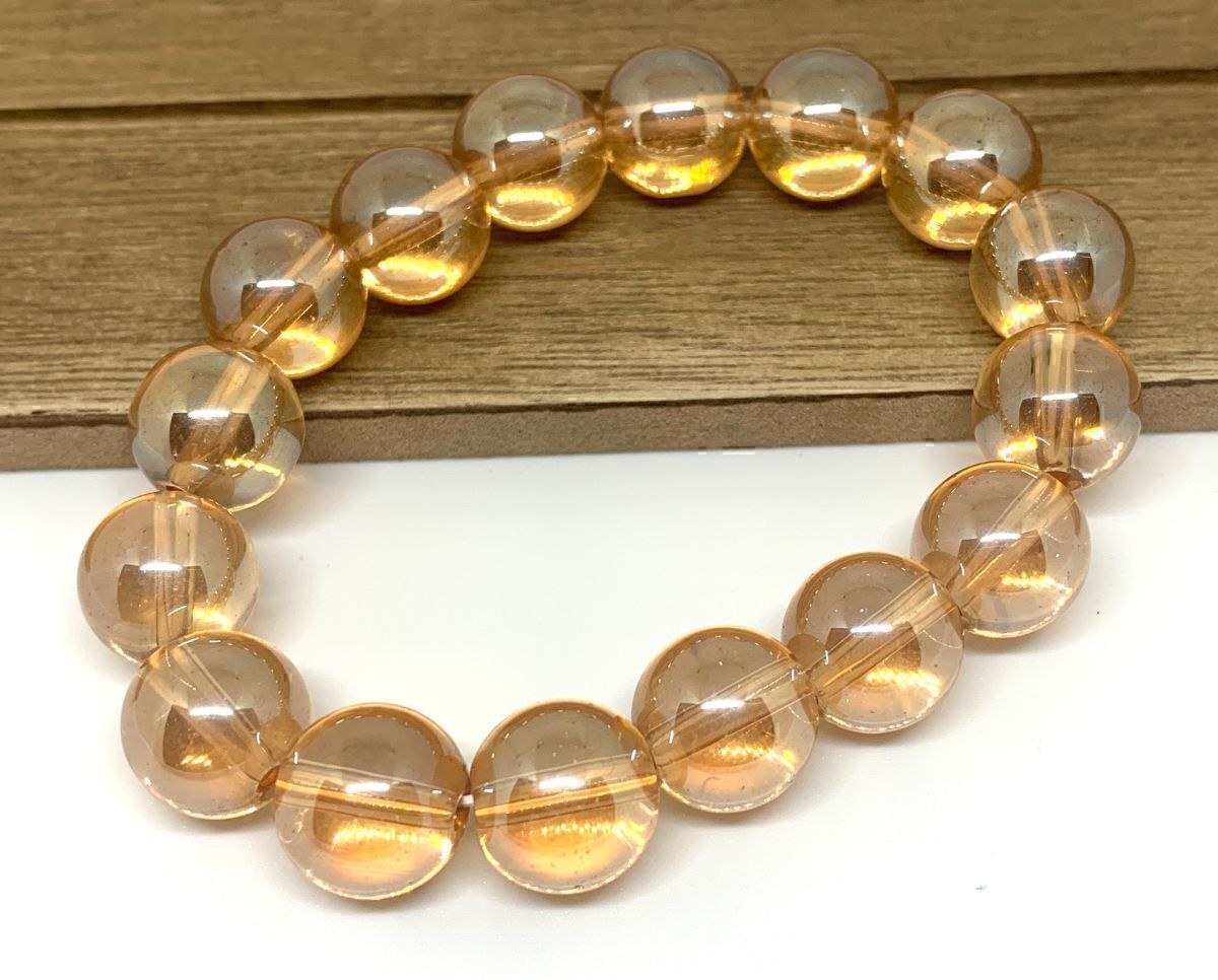 - 【Premio Fortuna】シャンパンゴールドの水晶ブレスレット ゴージャスな12ミリ珠 内径約16センチ C6hmZ5z9 174