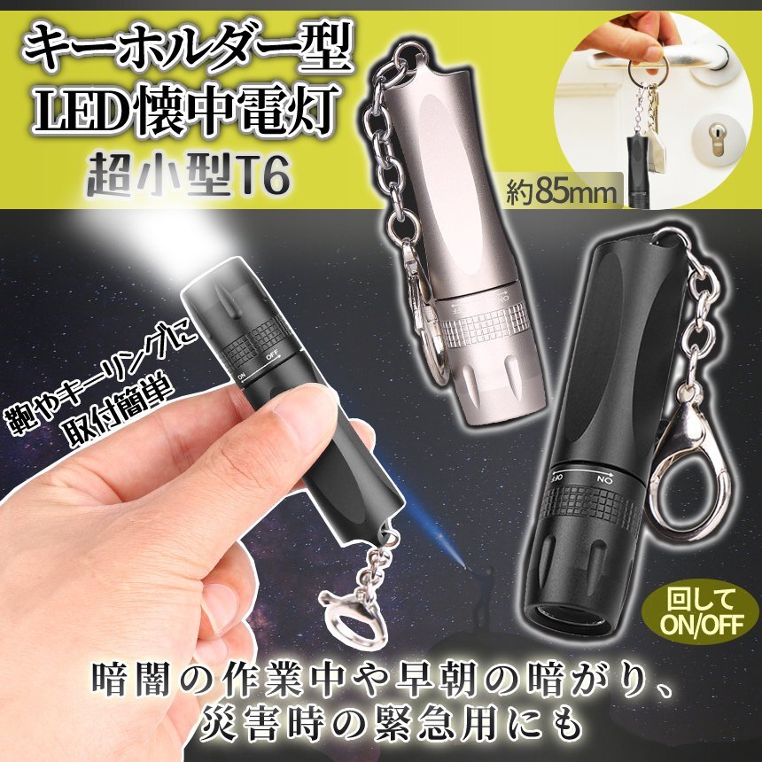 > ハンディ LED ライト ブラック 懐中電灯 T6 超ミニ ペン式 ペン型ライト キーリング 高輝度 照明 キーホルダー チェーン MAWARAI