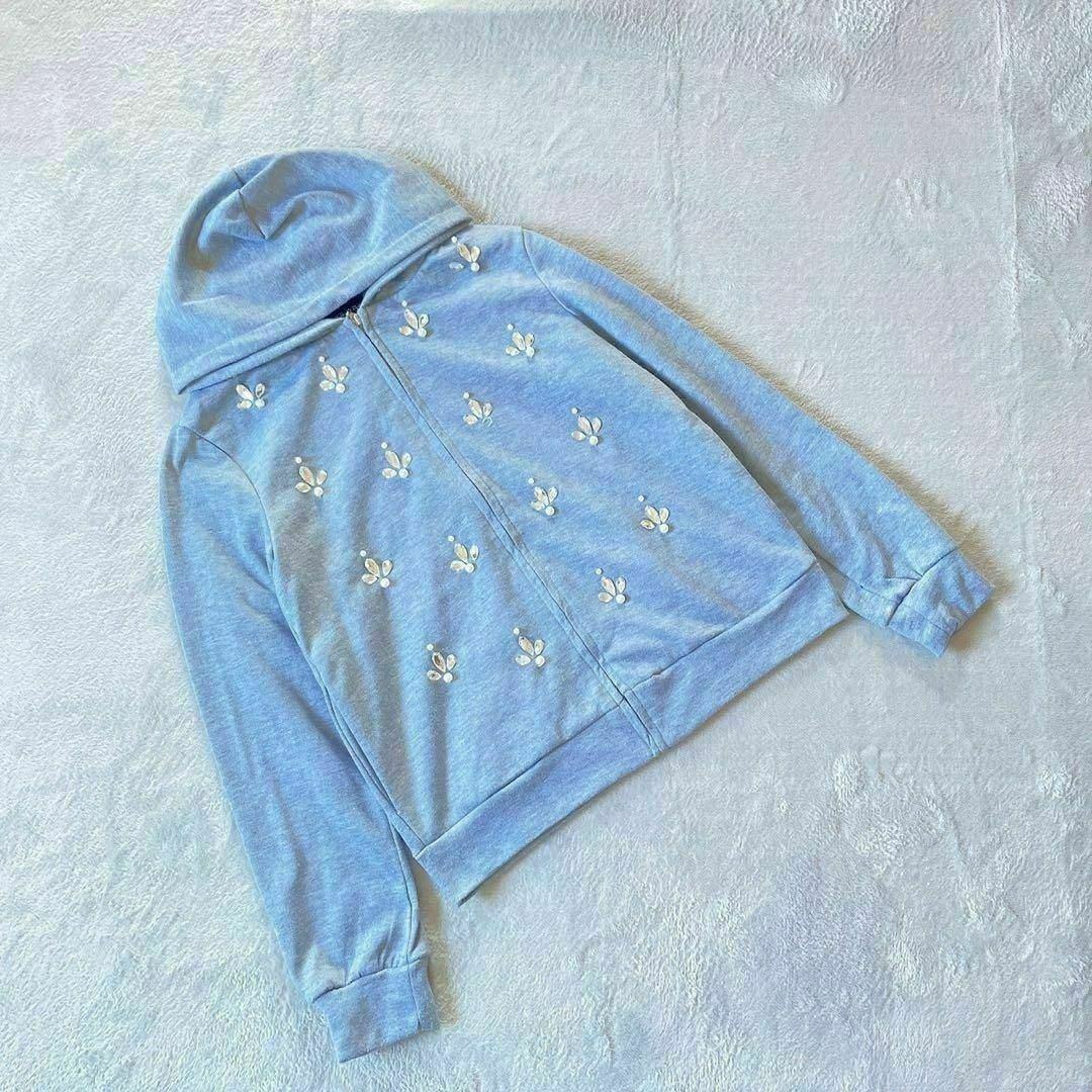 - 【CECIL MCBEE】セシルマクビー(M) 無地 ビーズ ビジュー パール 長袖 パーカー フード