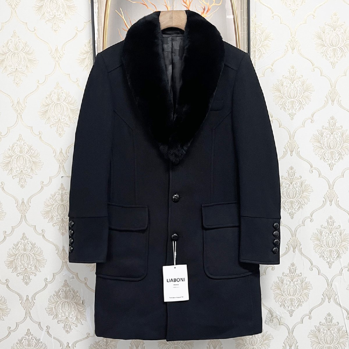 - 高級EU製&定価7万◆UABONI*Paris*テーラードジャケット*ユアボニ*パリ発◆カシミア 豪華毛皮 ソフト ファー襟付き 洗練 コート 冬 2XL/52