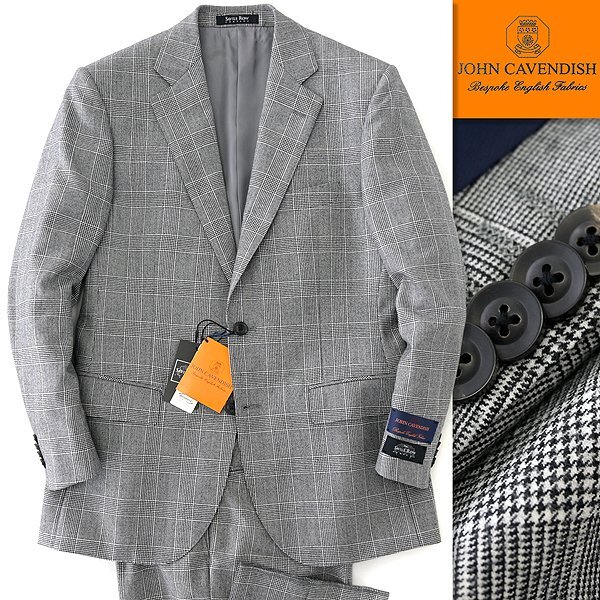 - 新品 サヴィルロウ 英国 JOHN CAVENDISH グレンチェック サキソニー スーツ A7(LL) 灰 【J45881】 秋冬 SAVILE ROW ウール グレー 起毛
