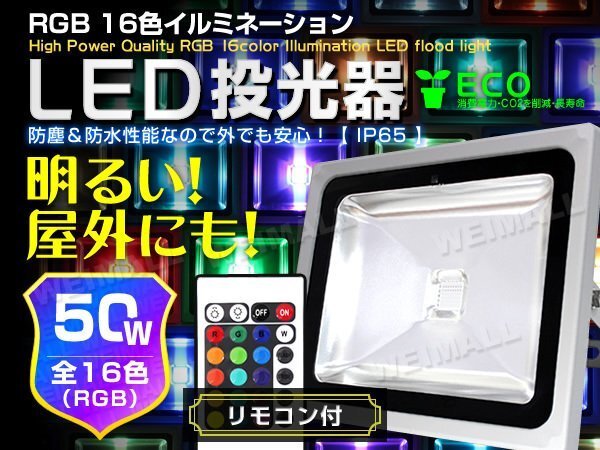 - 16色 LED投光器 50W イルミネーション リモコン付 RGB 500W 相当