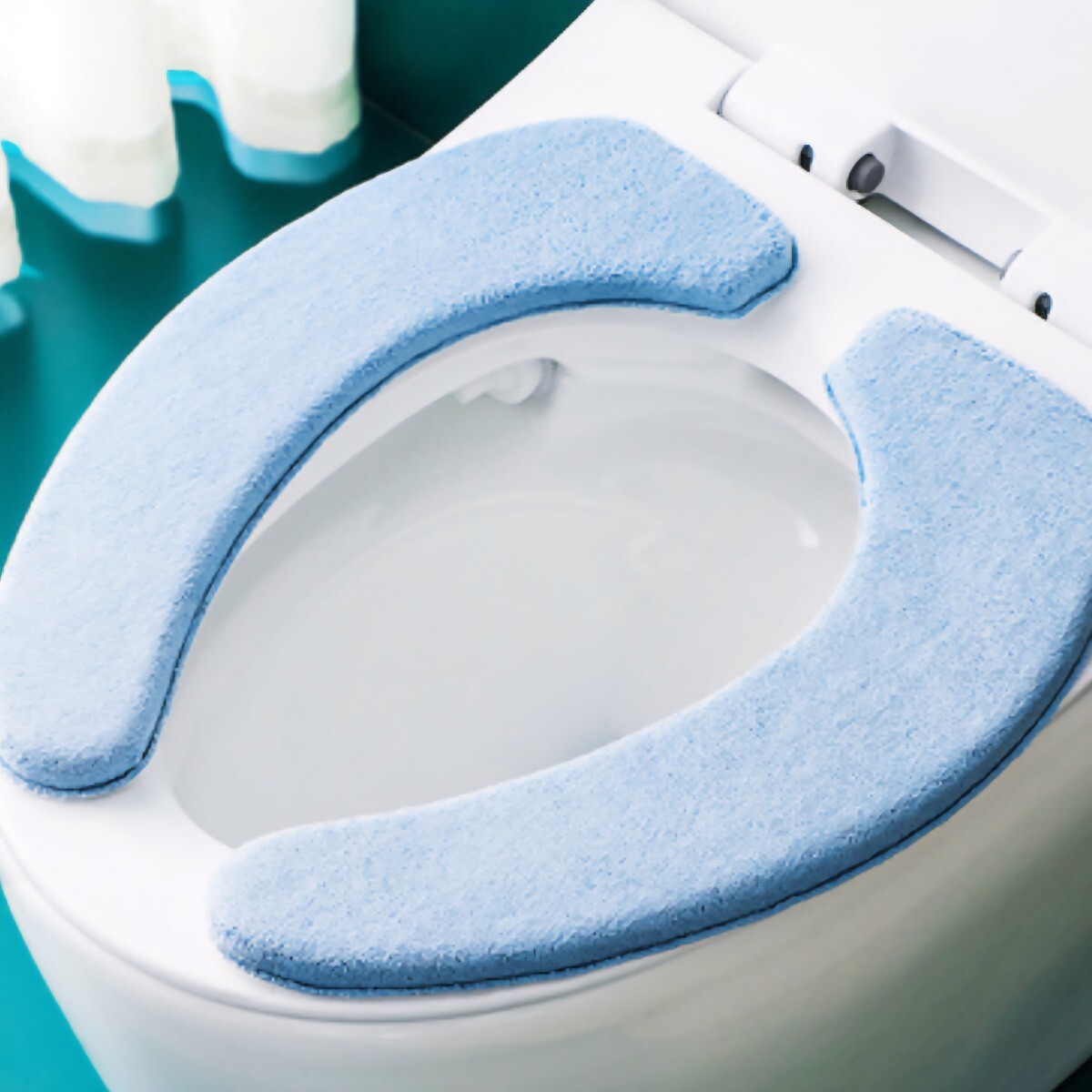 - 【ふわふわ便座シート】クッション 吸着 丸洗い 節電 節約 ライトブルー