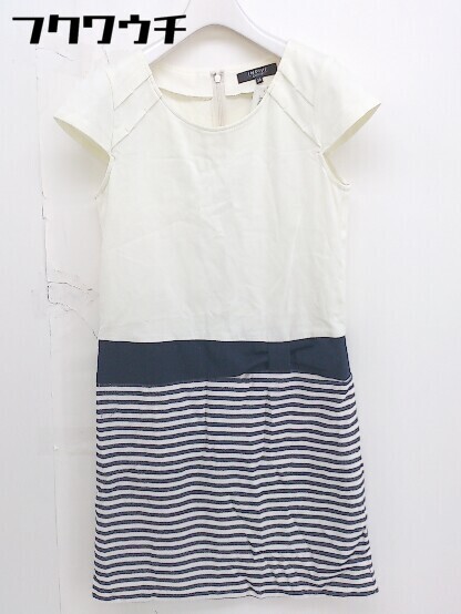 > ◇ INDIVI インディヴィ バックジップ 切替 ボーダー 半袖 膝丈 ワンピース サイズ36 アイボリー ネイビー レディース