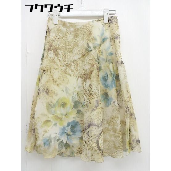 - ◇ STRAWBERRY FIELDS ストロベリーフィールズ 総柄 膝丈 フレア スカート 表記なし イエロー マルチ レディース