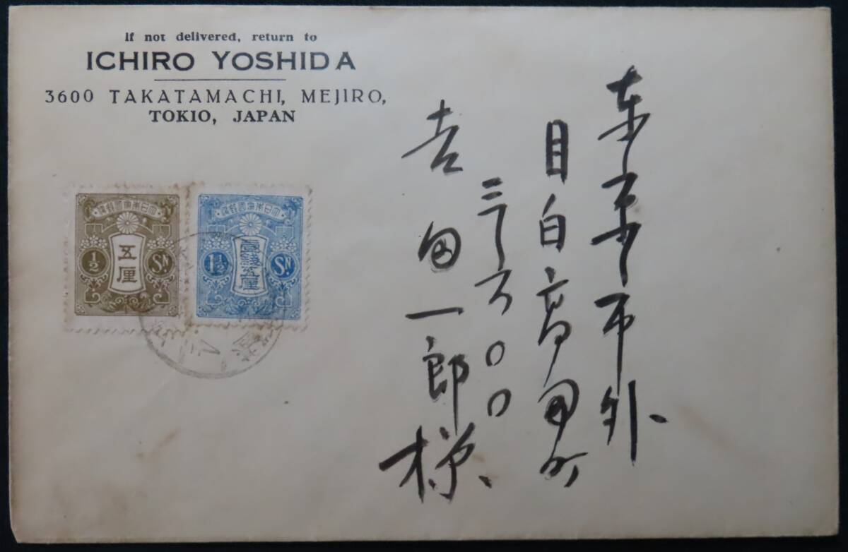 - 【台湾基隆高雄間船内印 田沢1銭5厘、5厘貼日本宛書状】