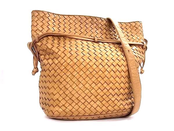> 1円 BOTTEGA VENETA ボッテガヴェネタ イントレチャート レザー 巾着型 ワンショルダーバッグ 肩掛け レディース ブラウン系 FU8383
