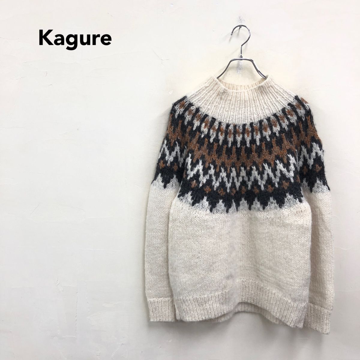 > 2N3020-K◆ペルー製 Kagure かぐれ モックネックノルディックセーター◆sizeFree オフ白 厚手 アルパカ混ウール カジュアル レディース