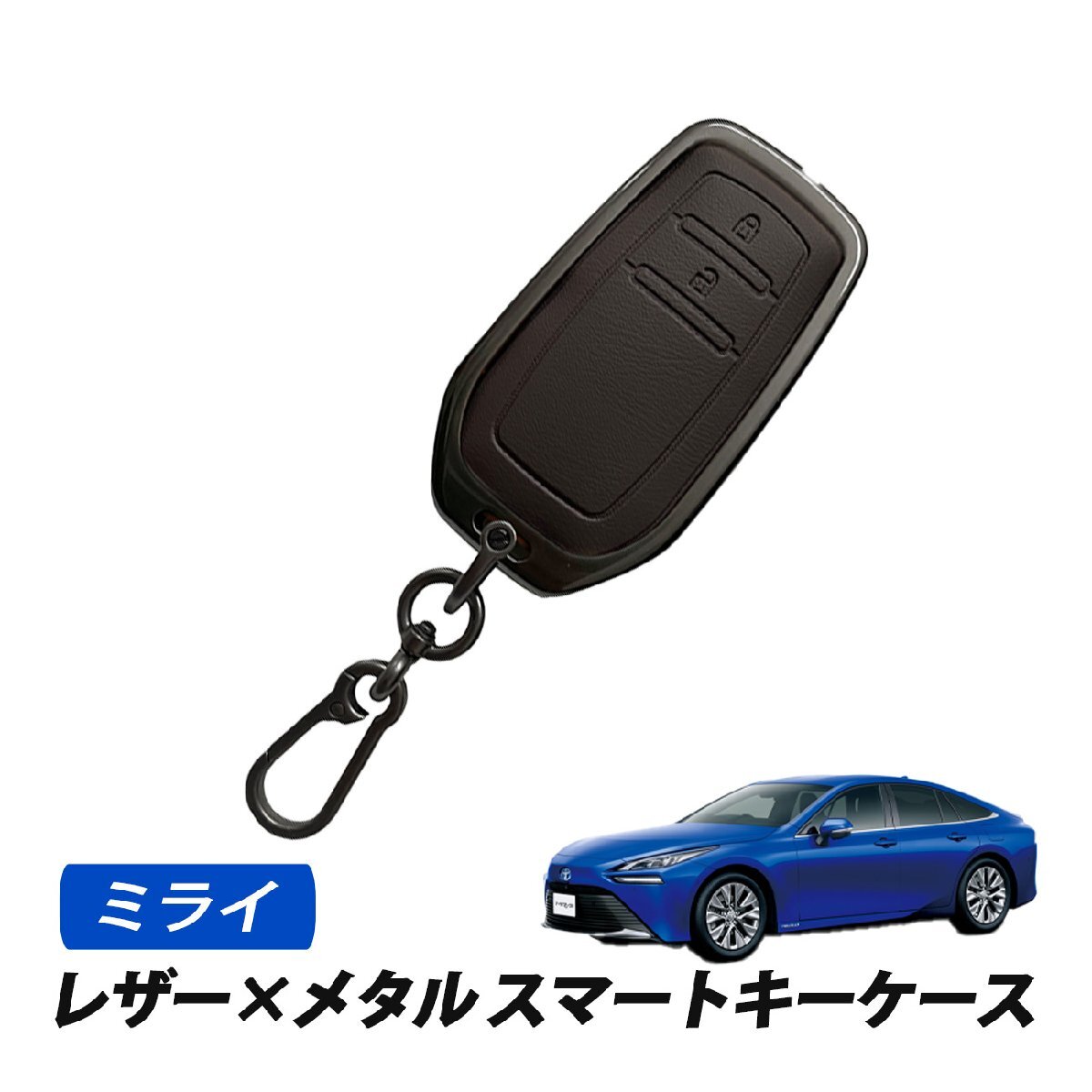 - ミライ スマートキーケース キーカバー レザー メタル トヨタ 2ボタン 専用設計 キーケース ブラウン