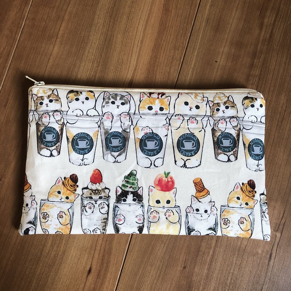 - ハンドメイド カフェにゃんこ フラットポーチ