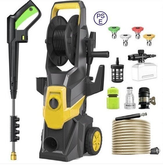 - 高圧洗浄機 商業用 高圧洗車機 水道直結/自吸両用 AC110V/3000W 10m高圧ホース付 洗車 収納/移動もラクラク ノズル付