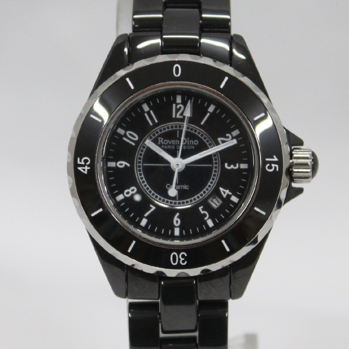 > ★1スタ!! Roven Dino ロマンディーノ レディース腕時計 RD3268 クォーツ デイト 文字盤ブラック 箱付き 動作確認済み 中古品 m_w