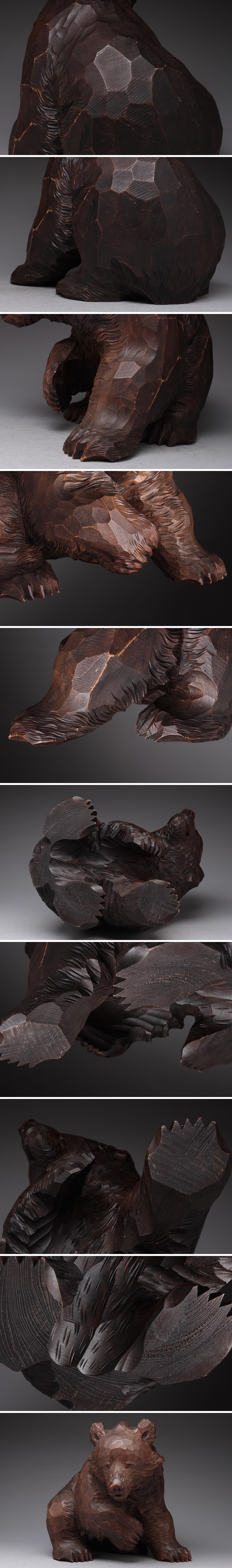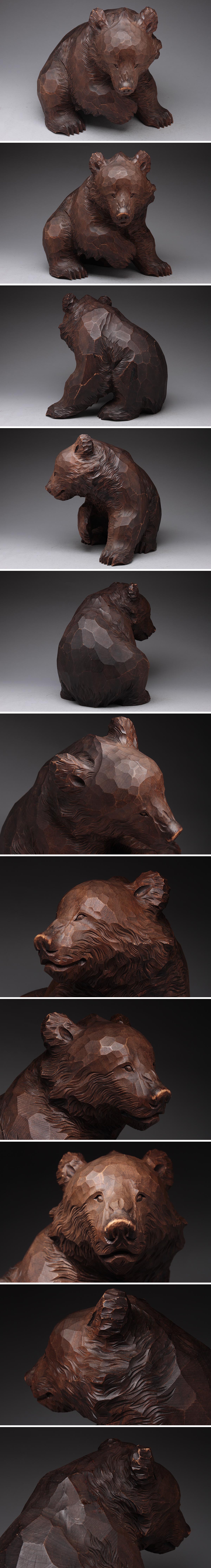 - JQ027 旭川アイヌ 木彫り熊「座る熊」置物 高27.5cm アイヌ彫刻 北海道伝統工芸 木工芸 郷土玩具 農民美術 古美術 検)八雲