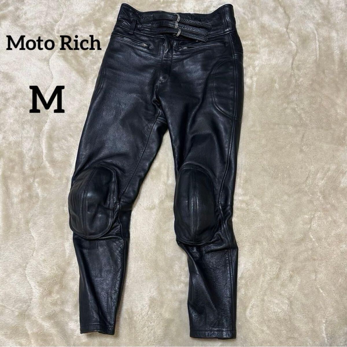 - モトリッチ レザーパンツ 本革 黒 ライディングパンツ