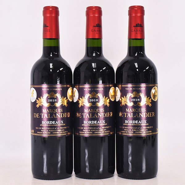 - ワイン 3本セット マルキ ド タランディエ 2018年 赤 750ml 13% ボルドー MARQUIS de TALANDIER L14S180