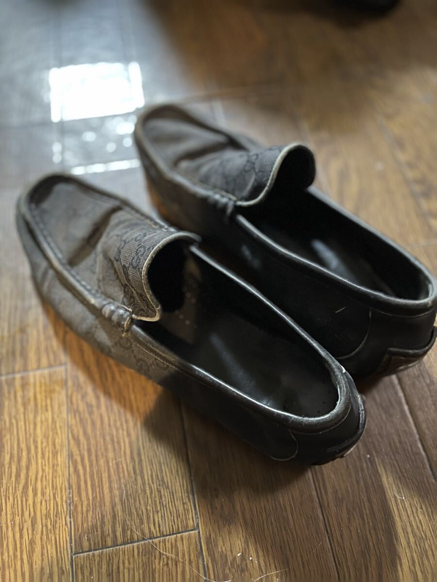 > GUCCI グッチ サイズ:41 1/2 日本役26.5〜27cm キャンバス ドライビングシューズ スリッポン ローファー GG