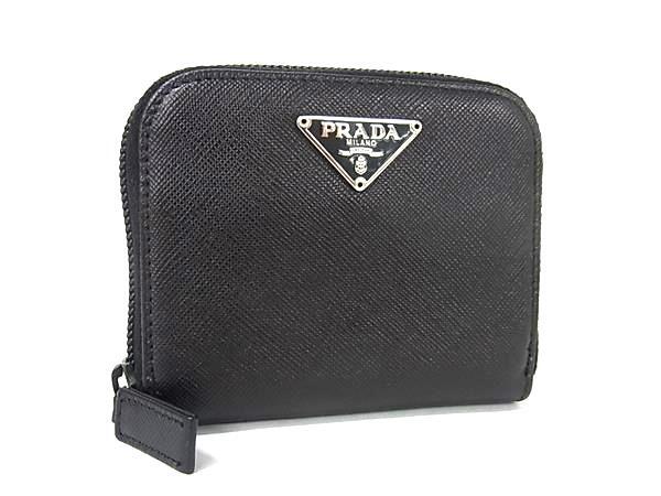 - 1円 ■極美品■ PRADA プラダ サフィアーノレザー ラウンドファスナー コインケース コインパース 小銭入れ メンズ ブラック系 HA0664