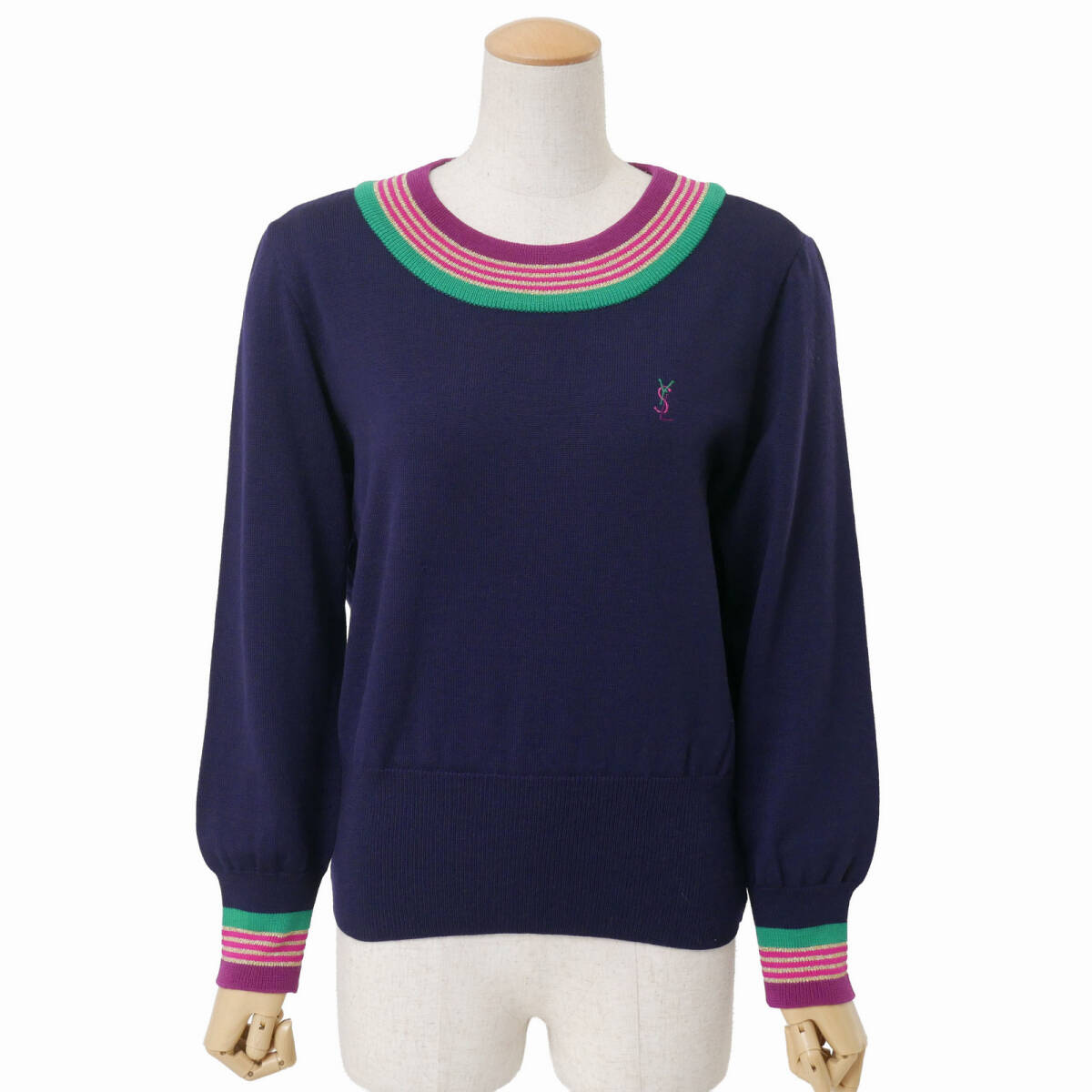 > TK1606●イヴ・サンローラン/YVES SAINT LAURENT*YSL*ヴィンテージ*ウール 長袖ニットセーター*スリット糸*レディース サイズM