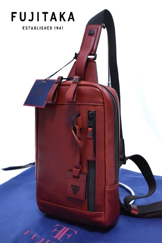 - 【定価3万8500円】新品 FUJITAKA【ホーク】レザーワンショルダーバッグ 615903 レッド フジタカ ボディバッグ
