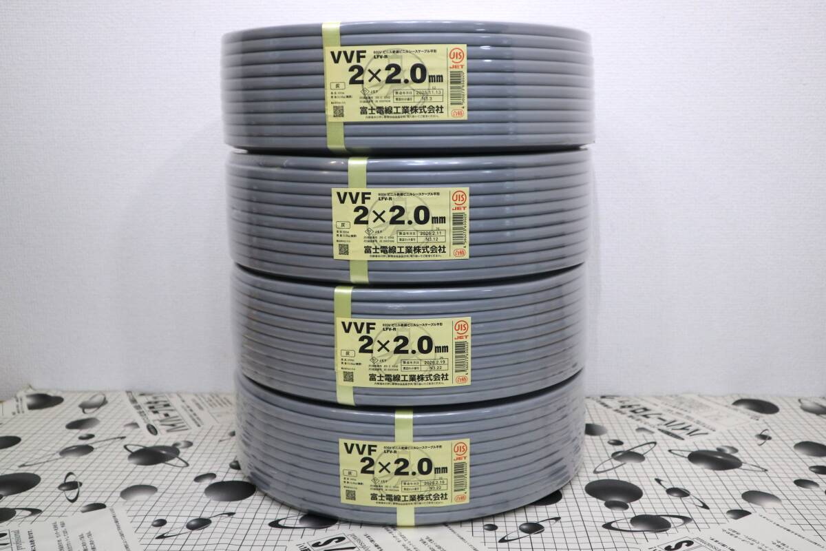 > 放出 4本まとめて 新品 未使用 富士電線工業株式会社 【 VVF2x2.0mm 】 100m巻