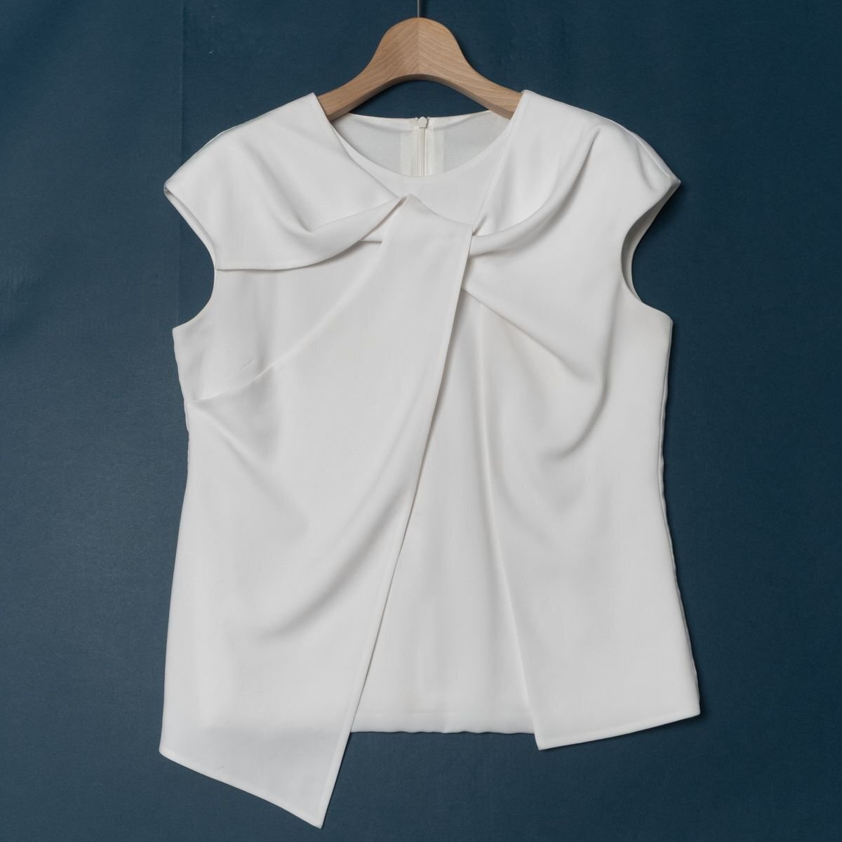 > 【1円スタート】メール便○ FOXEY NEW YORK フォクシー フレンチスリーブシャツ ブラウス ポリエステル フェミニン エレガント 白 無地