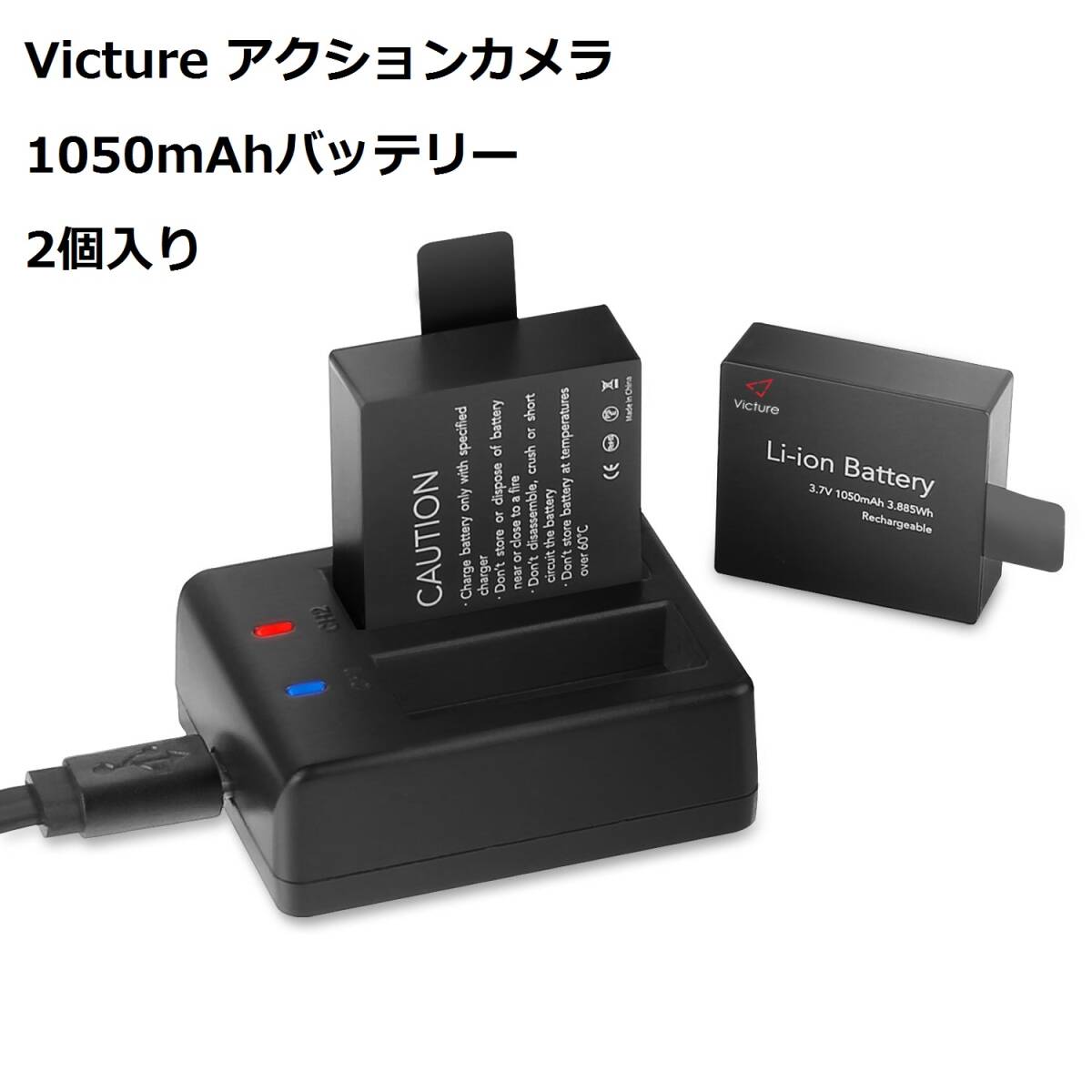 - 【2個入り】Victure アクションカメラ バッテリー ウェアラブルカメラ 専用互換 1050mAh 充電式 急速デュアル充電器 mini USBケーブル付き