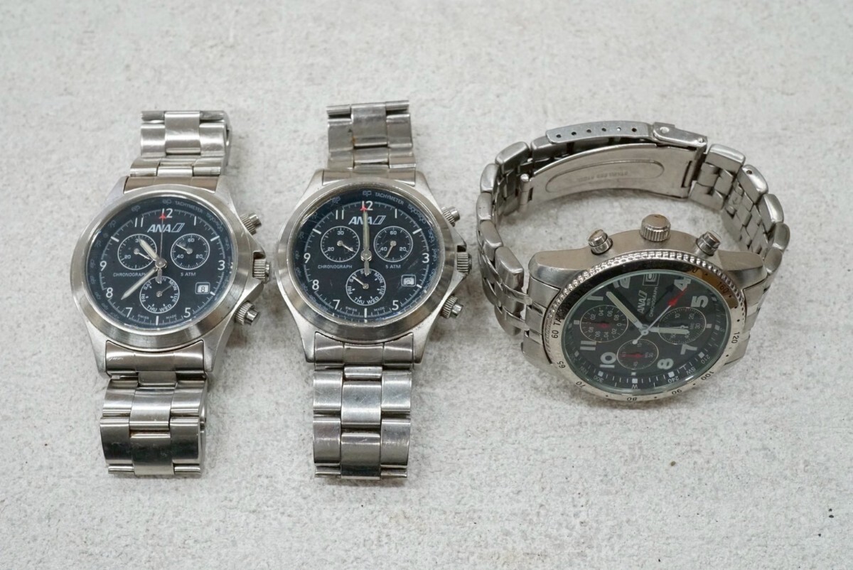 > F862 ANA/エイエヌエー 全日空 クロノグラフ メンズ 企業系 3点セット 腕時計 アクセサリー ヴィンテージ 大量 おまとめ まとめて 不動品