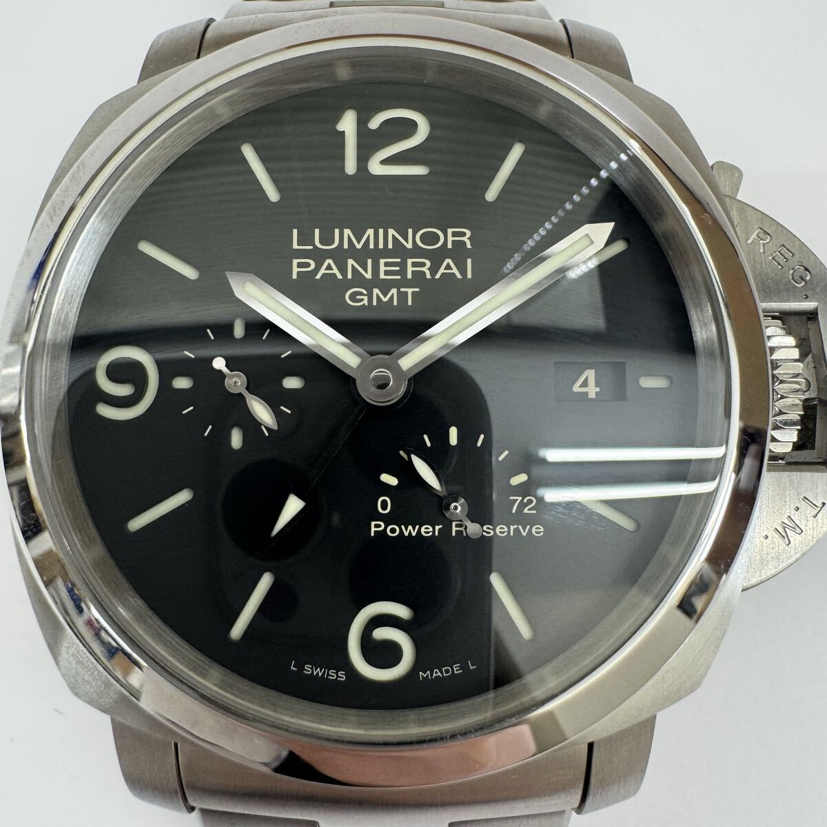 > ★PANERAI LUMINOR パネライ ルミノール GMT 1950 パワーリザーブ メンズ 腕時計 PAM00347 自動巻き 稼動 黒文字盤 箱あり OB1462