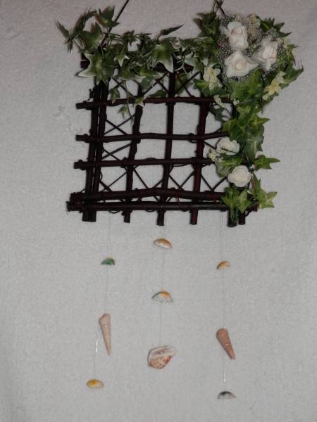 - ハンドメイド 四角バラ・貝9個付きリース④(26㎝)