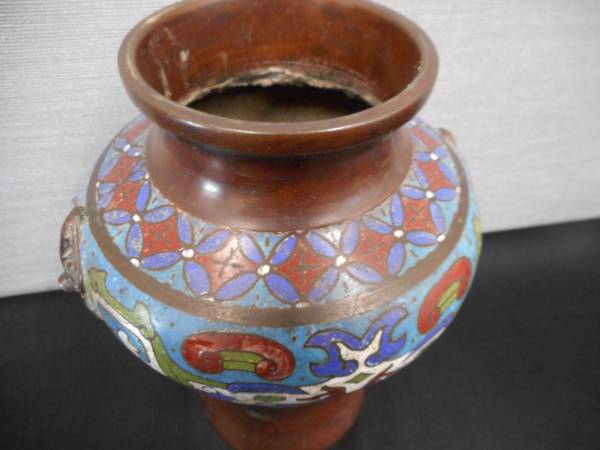 ■ 銅製古七宝細工 花瓶 大明宣徳年製 時代唐物 ■