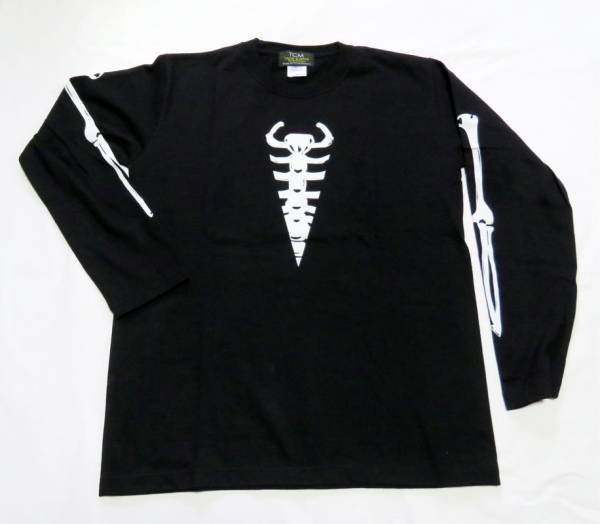 - ボーン骨スカル骸骨TシャツTCM(鎖骨無しV)no2.ロン黒M
