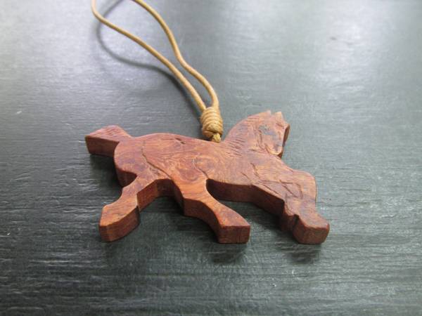 - 花梨瘤オイルフィニッシュ駿馬鳥獣戯画動物彫刻ペンダント