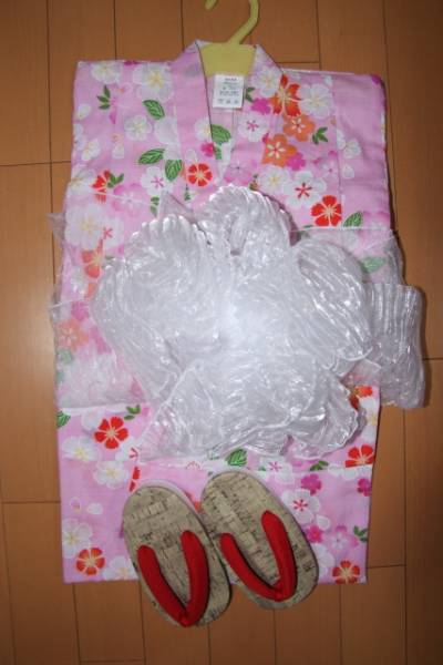 - 新品★子供浴衣3点セット★女の子110cmピンク桜ナデシコ3/兵児帯下駄