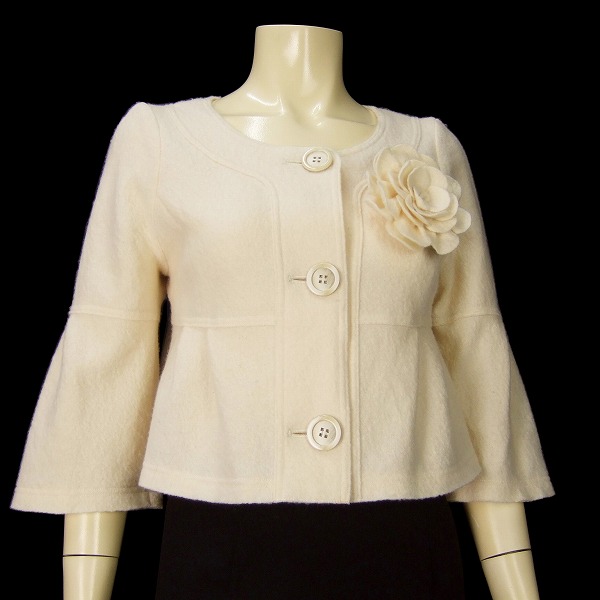 - A 美品★MOGA モガ★淡エクルベージュ系*レディース*綺麗花ブローチ付き*優柔ウールジャケット*2表記★11号*L*40相当