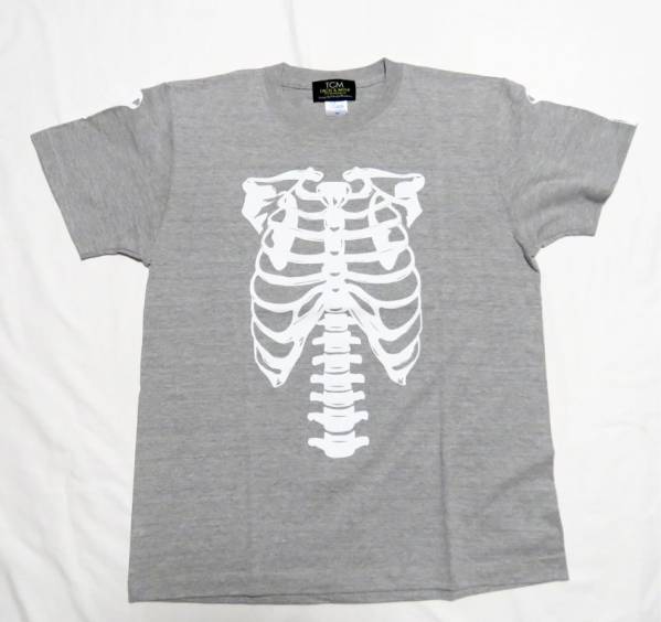- ボーン骨スカル骸骨TシャツTCM(鎖骨有り)前後no3グレイM
