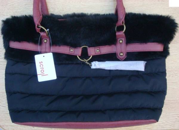 - 【未使用品】【送料込】 scroll ショルダーバッグ フェイクファー 黒エンジ