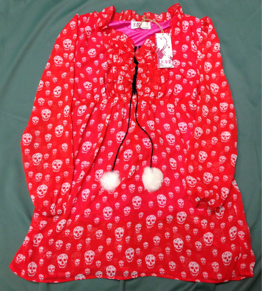 - 未使用 KOR フリル&袖シースルー ワンピースドレス レースアップ